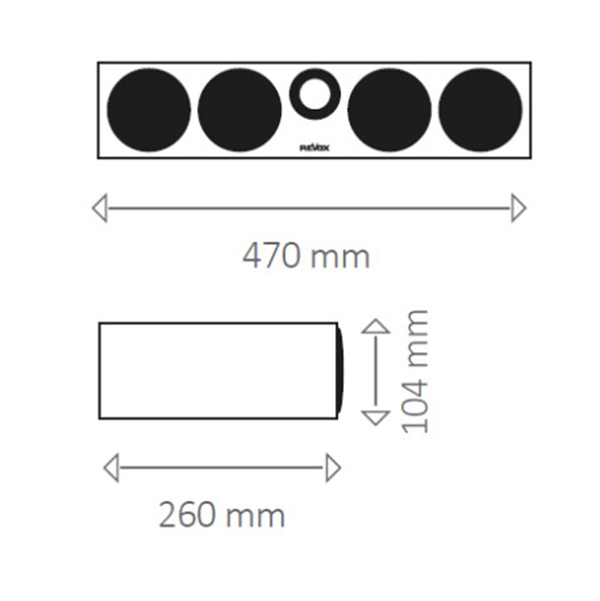 - H x B x T: 104 mm x 470 mm x 260 mm