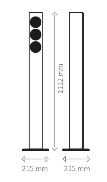 - H x B x T: 1112 mm (Sockel 12 mm) x 104 mm (Sockel 215 mm) x 104 mm (Sockel 215mm)