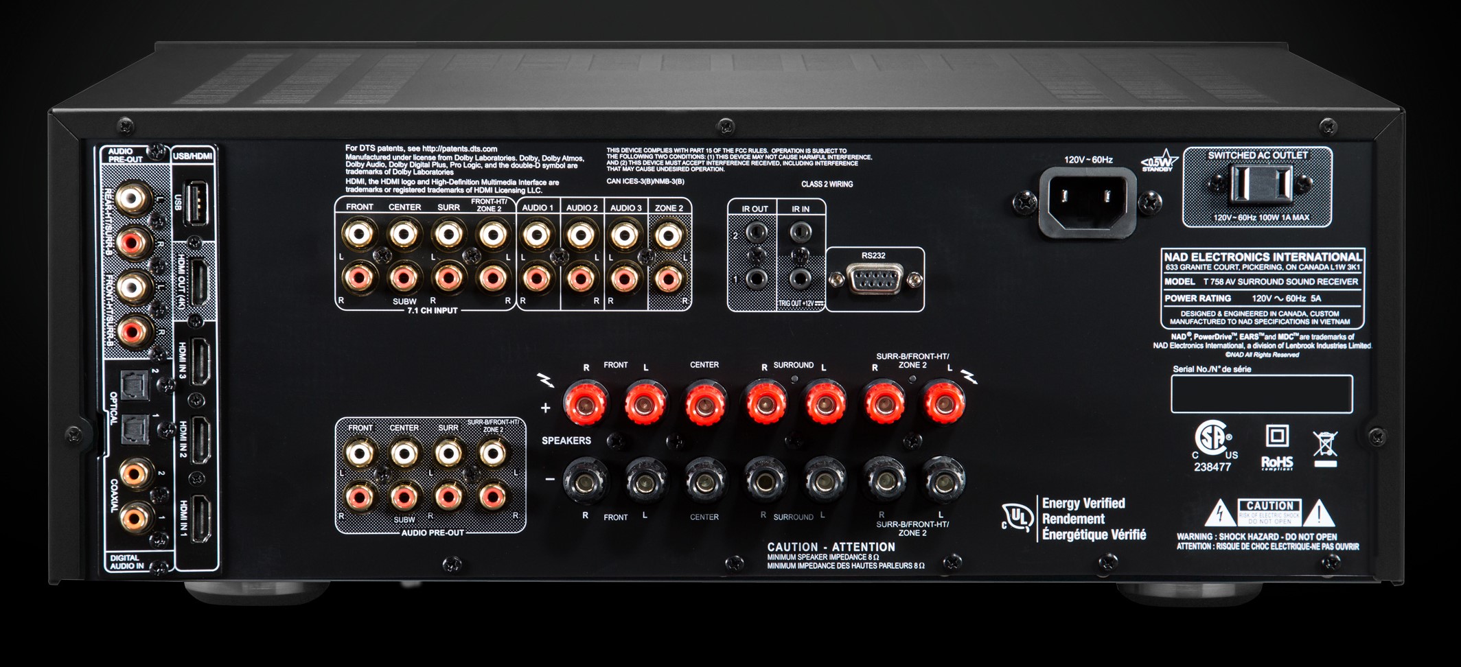 Der T758 V3i unterstützt modernste digitale Videotechnologien einschließlich UltraHD-Video mit Auflösungen von bis zu 3840 x 2160 Pixeln bei 60 Bildern pro Sekunde mit 4:4:4:4 Farbraum. Analoge Videoquellen werden auch in HDMI umgewandelt, um sie einfach mit einem Kabel an Ihren Flachbildschirm oder Projektor anzuschließen. Die Videoverarbeitung erfolgt dann in Ihrem TV-Gerät, damit keine unnötigen Formatkonvertierungen erfolgen müssen, wie dies bei zahlreichen anderen A/V-Receivern der Fall ist.