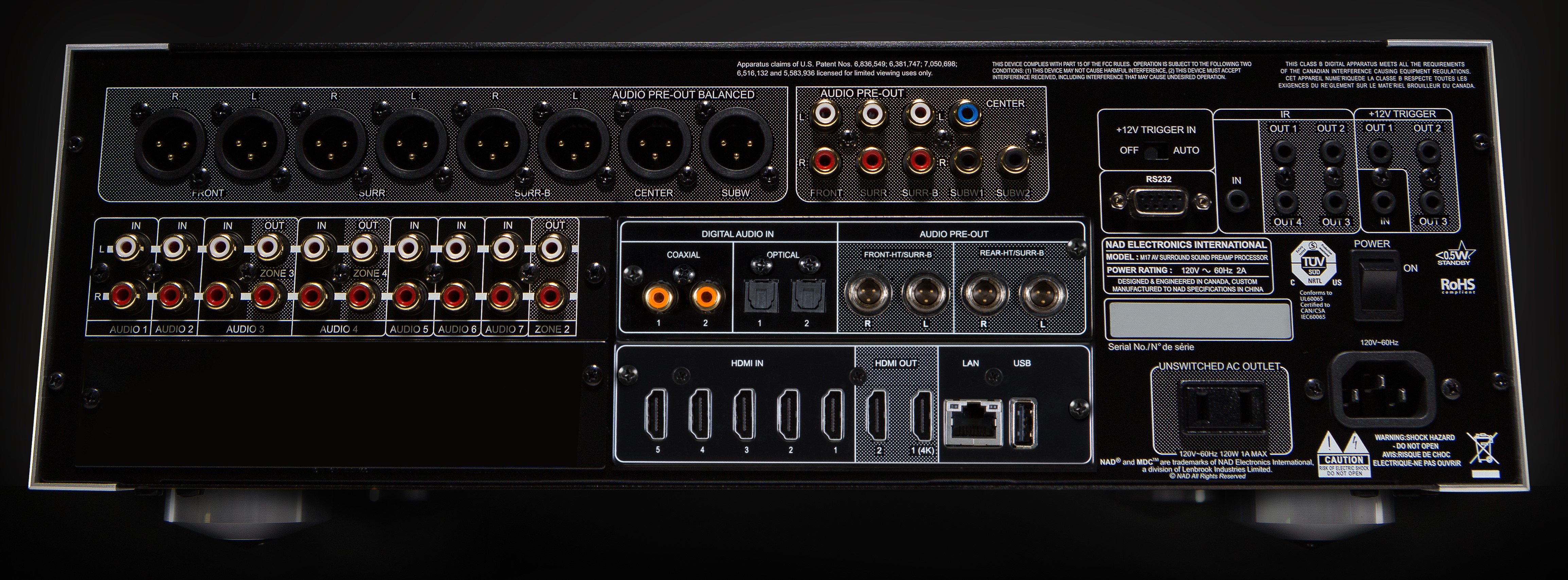 Die neuesten HDMI-Funktionen, einschließlich HDCP 2.2, 4: 4: 4-Farbauflösung, High Dynamic Range-Videounterstützung und CEC / ARC, sind alle enthalten. Digitale Ein- und Ausgänge sind sowohl im koaxialen als auch im optischen Format verfügbar, damit Sie alle Ihre digitalen Quellen problemlos anschließen können. Digitale Eingänge werden für die Verwendung in Zone 2 in analoge umgewandelt. Sie können nicht verwendete Bandausgänge für die Verwendung in Zone 3 und Zone 4 mit unabhängiger Quellenauswahl und Lautstärkeregelung konvertieren. Mit BluOS haben wir es auch einfach gemacht, weitere Lautsprecher für das Musikhören in zusätzlichen Räumen hinzuzufügen. IR-Repeater, 12-V-Trigger zum automatischen Ein- und Ausschalten von Verstärkern und ein RS-232-Datenanschluss erleichtern den Anschluss an hochmoderne automatisierte Steuerungssysteme wie Crestron und Control4. Durchdachte Funktionen wie diskrete Ein- und Ausschaltcodes,